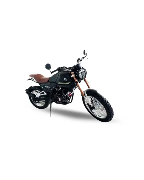 Motor monocilíndrico 4 tiempos 250cc, velocidad máxima 120 km/h, encendido eléctrico y mecánico (patada), transmisión 5 velocidades. Suspensión delantera de horquilla, trasera monoshock. Frenos de disco, llantas tipo sport. Diseño clásico retro con tecnología moderna, confort urbano y para viajes largos. Luces LED.