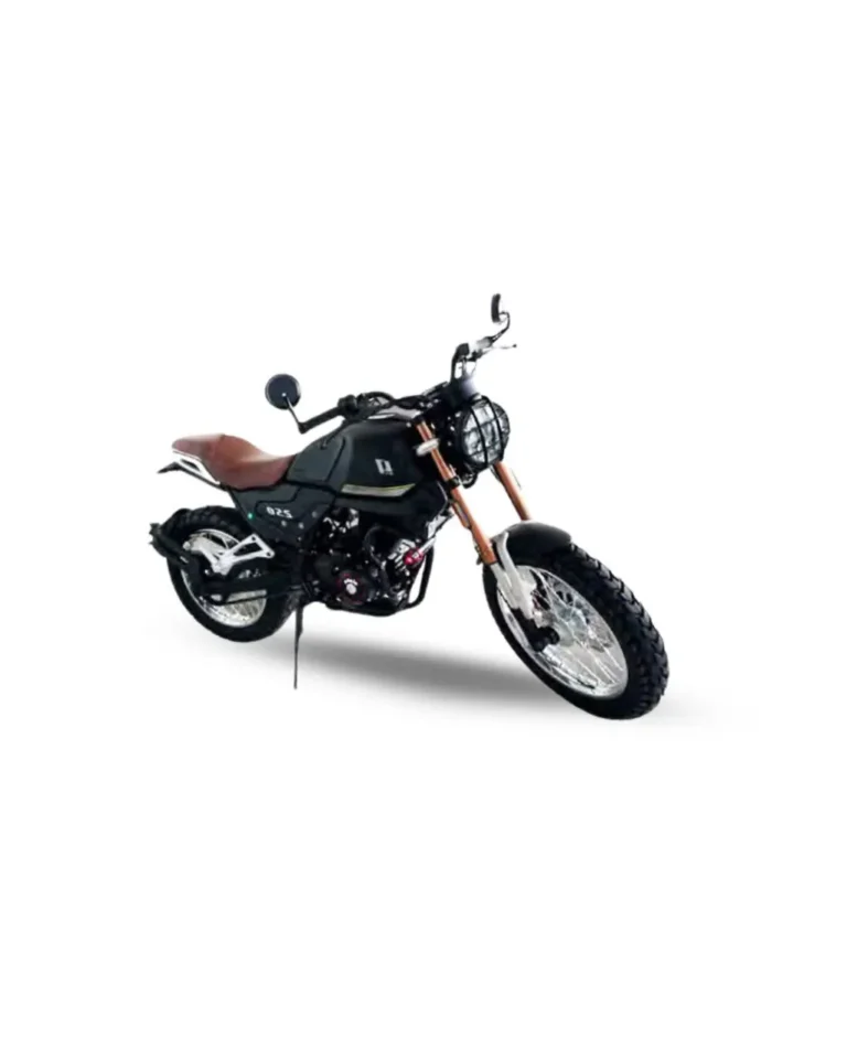 El diseño retro, con líneas elegantes y acabados de alta calidad, rinde homenaje a las motocicletas de época, mientras que su sistema de frenos de disco y luces LED aseguran una conducción más segura y confiable.