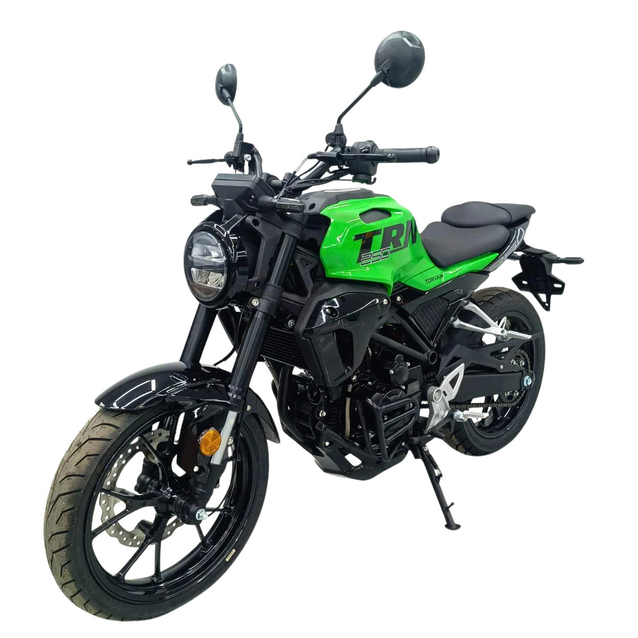 Motor Lifan CBB25 monocilíndrico con balanceador, 250cc, potencia máxima 11.5 kW (15.42 HP) a 7500 RPM, par máximo 16.5 Nm a 6500 RPM, refrigeración por aceite, relación compresión 9.34:1, diámetro x carrera 65.5 x 66.2 mm. Transmisión 6 velocidades, arranque eléctrico, encendido CDI. Suspensión delantera con barras telescópicas invertidas, frenos de disco delantero y trasero. Llanta delantera 110/70-17, trasera 140/70-17.